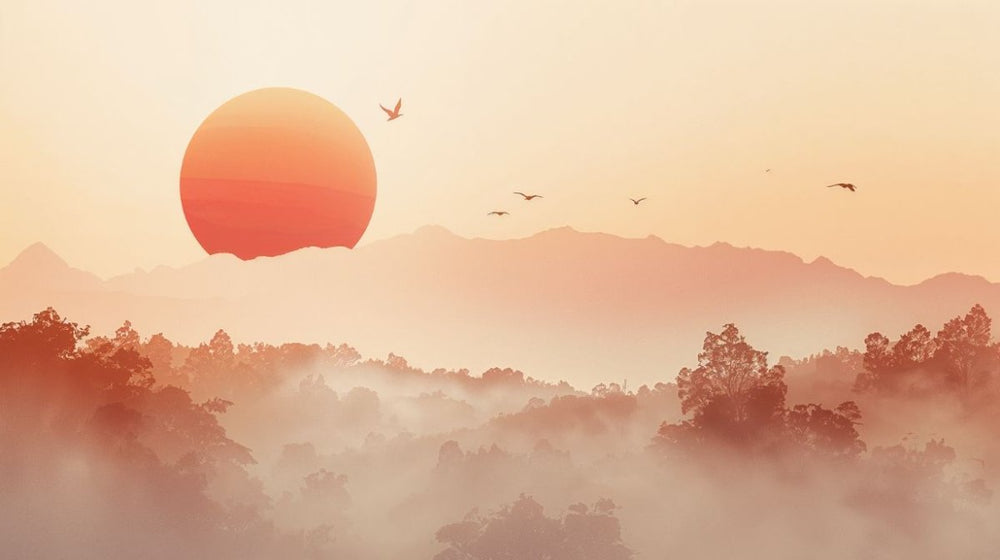 Amber Horizon - Japanese Landscape Accent Wall Mural Wallpaper
