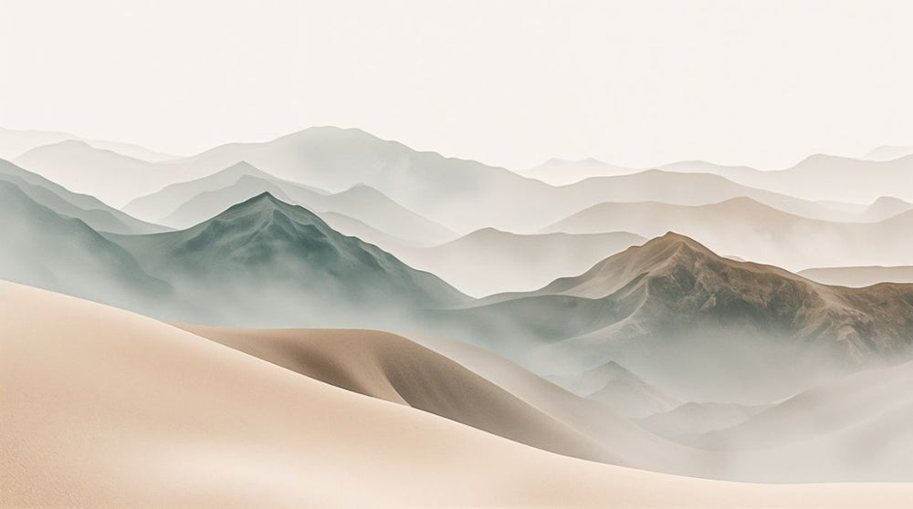 Perfect for a tranquil living room, a peaceful master bedroom, or an elegant dining room, this design transforms your space with a soft, minimalist landscape. The rolling dunes and hazy mountains are designed to create a sense of calm and a chic, stylish escape.